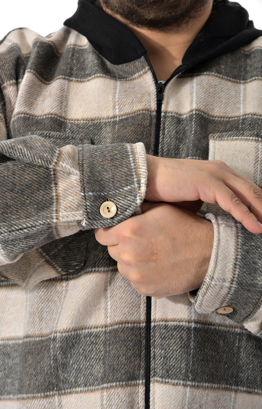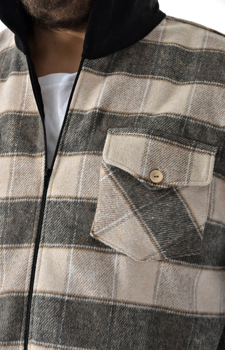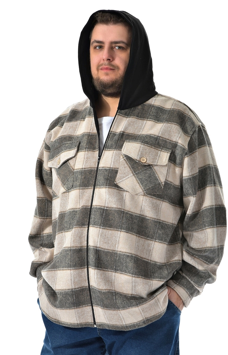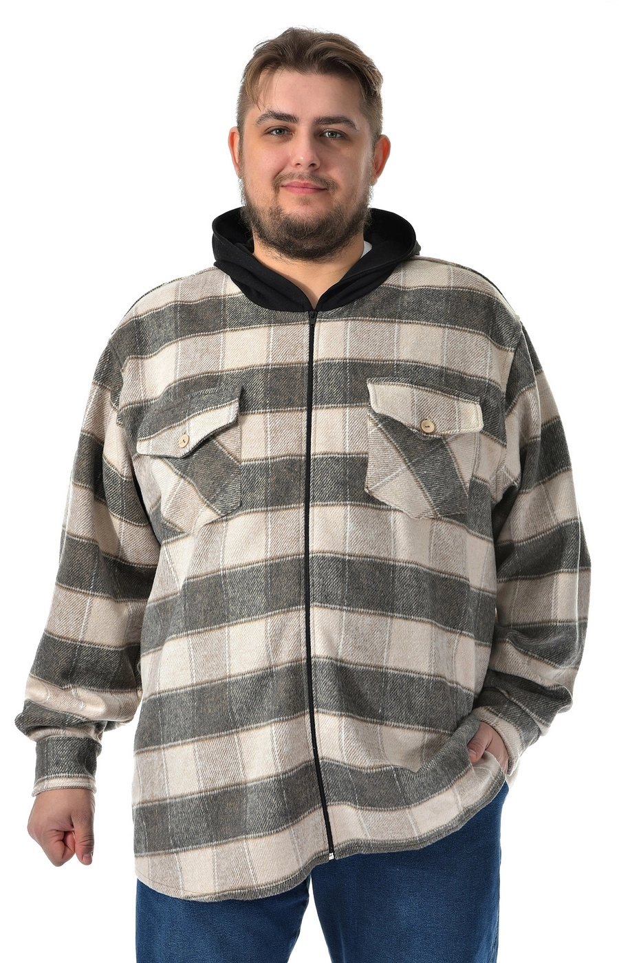 Рубашка ветровка серо бежевая в клетку / Большие люди / 22221422