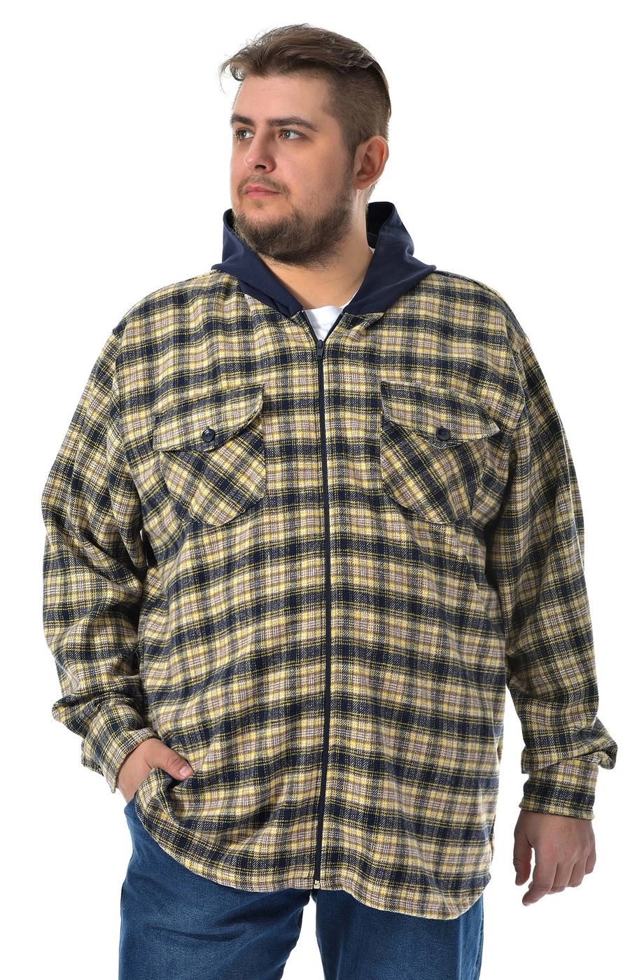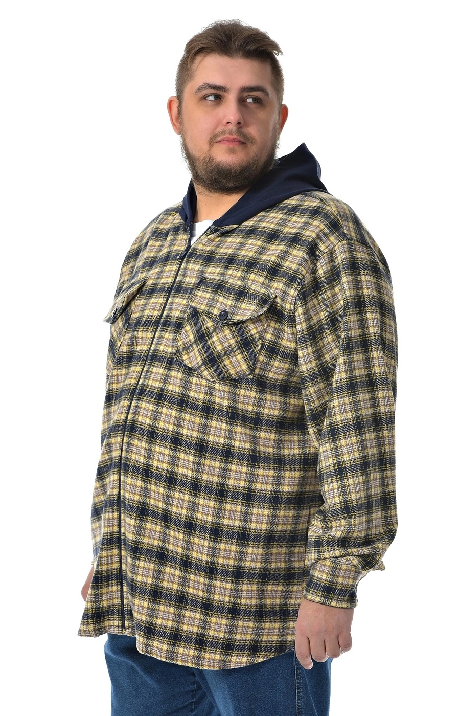 Рубашка ветровка сине желтая в клетку / Большие люди / 22221419