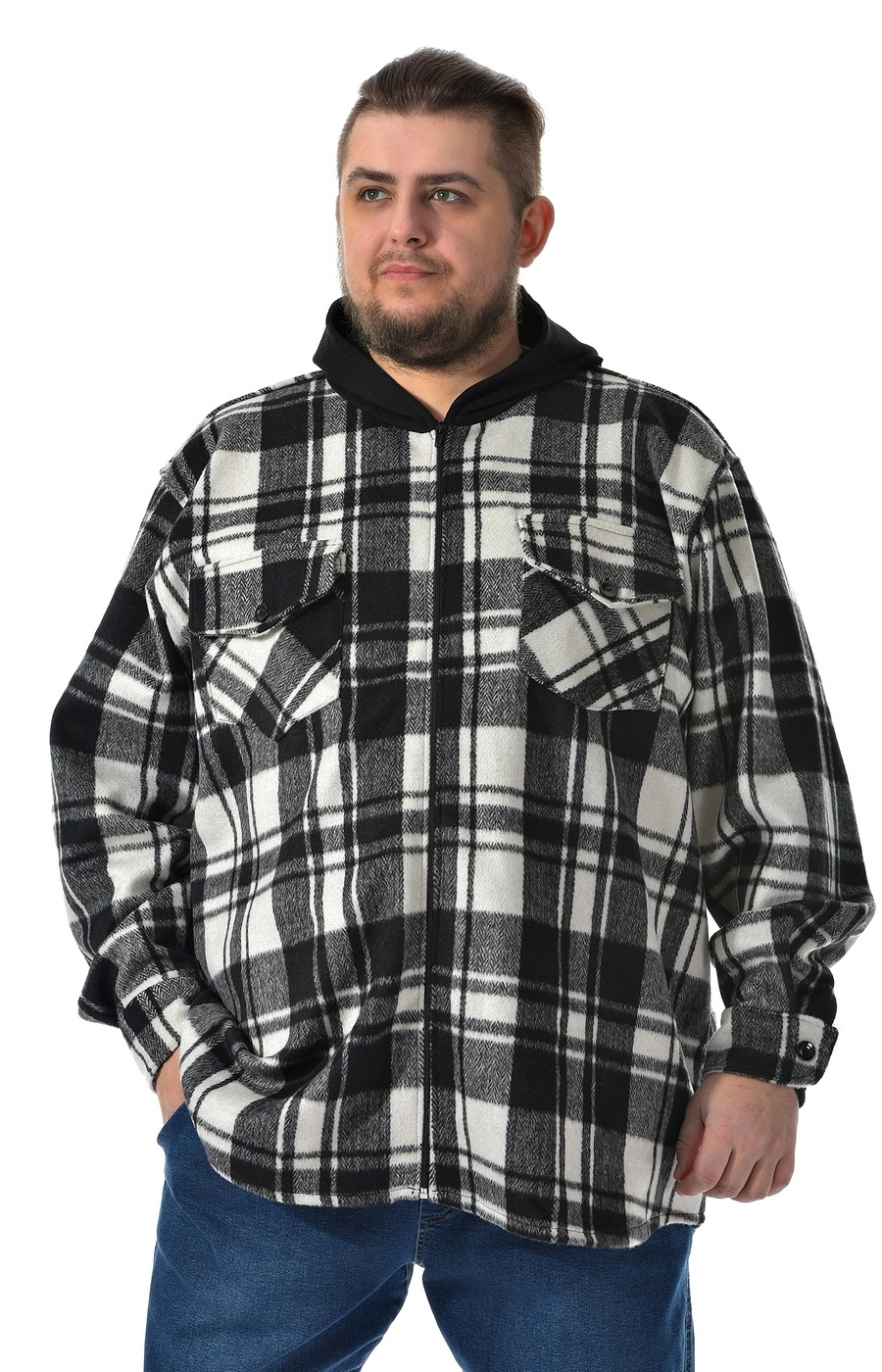 Рубашка ветровка черно белая в клетку / Большие люди / 22221420
