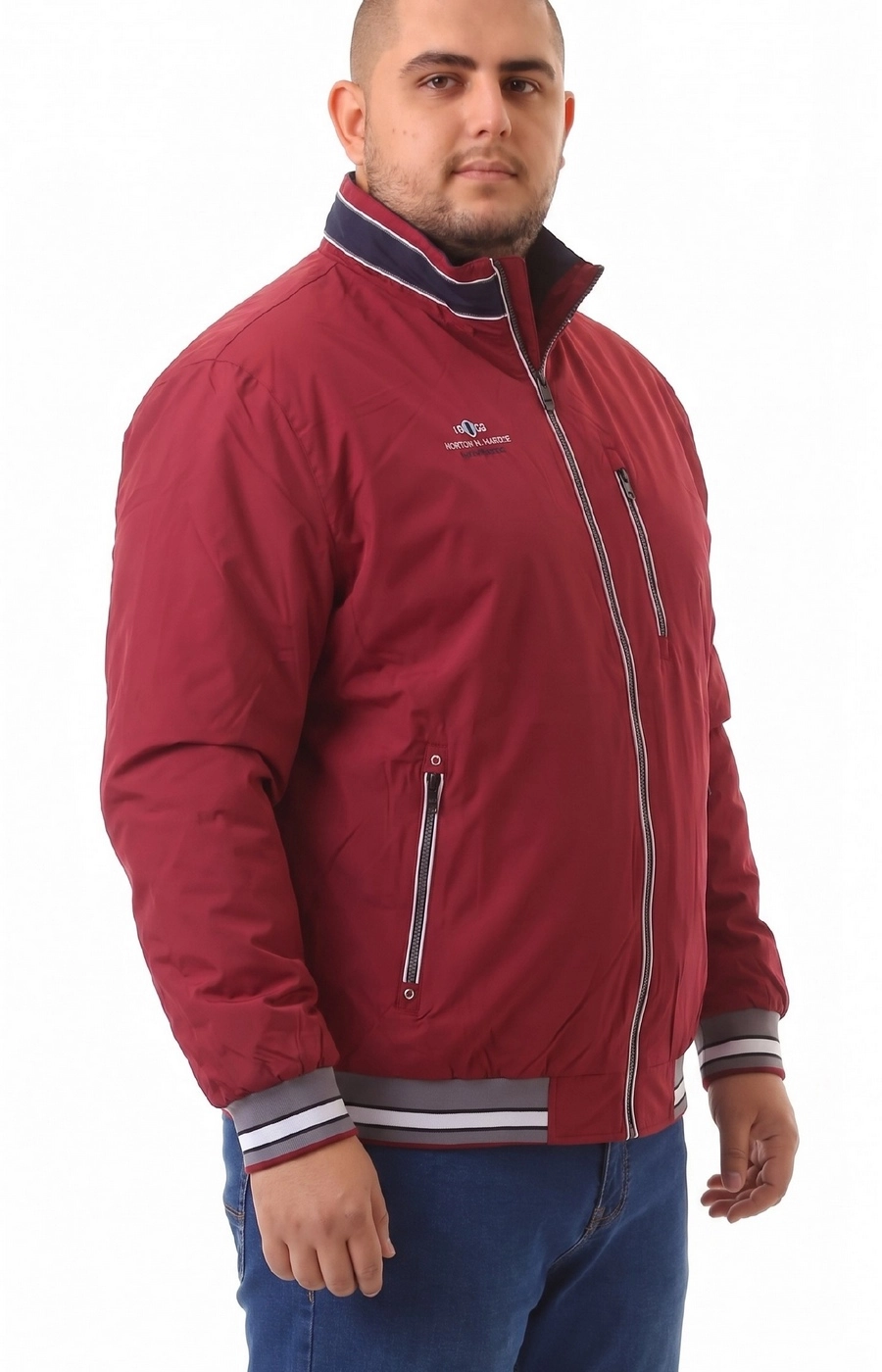 Мужская ветровка прямого кроя с комфортной посадкой и повседневным дизайном, удобная куртка больших размеров для города и отдыха. Гладкая бордовая ткань смотрится аккуратно, контрастные серо-белые полосы на воротнике-стойке, манжетах и по низу придают собранный спортивно-уличный характер. Застёжка на молнию по центру дополнена вертикальным нагрудным карманом на молнии и боковыми застёжками, все элементы выдержаны в едином лаконичном стиле. Эластичные манжеты и нижняя резинка помогают зафиксировать ветровку по фигуре и обеспечивают удобство в движении. Небольшие надписи и нашивка на рукаве поддерживают непринуждённый повседневный образ, который легко комбинировать с джинсами и базовыми брюками. Если нужны рекомендации по размеру и посадке именно под ваши параметры, подскажем и организуем доставку удобным для вас способом — просто напишите нам перед заказом.