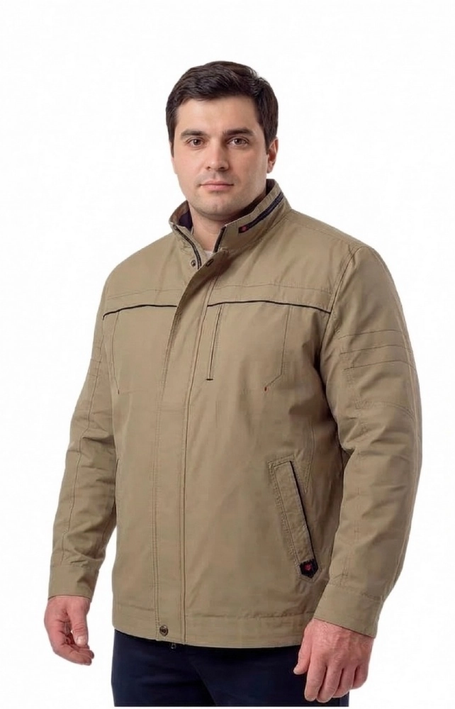 Мужская ветровка из хлопкосодержащей курточной ткани прямого кроя с комфортной посадкой и лаконичным дизайном, выполненная в цвете хаки, легко вписывается в повседневный гардероб и городские образы. Застежка на молнию с планкой на кнопках формирует аккуратную вертикальную линию и надежно фиксирует изделие по центру. Воротник-стойка держит форму и дополняет собранный внешний вид, его можно носить поднятым или слегка отогнутым. Рукава на манжетах, застегивающихся на кнопку, полноразмерные, не стесняют движений, по швам и полочке видна аккуратная прострочка, которая подчеркивает структурность вещи. Боковые накладные входы оформлены под углом, что удобно для повседневной носки на улице, в дороге и на отдыхе. Подкладка куртки из хлопкосодержащей ткани, с двумя внутренними карманами на молнии. Подскажем размер и посадку по вашим меркам и организуем доставку ветровки удобным для вас способом.