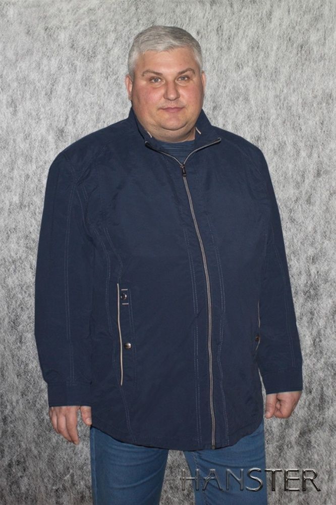 Укороченная ветровка синего цвета прямого кроя с застежкой на молнию. Куртка с одним нагрудным и двумя прорезными карманами на молнии, кнопках-магнитах. Воротник-стойка. Низ изделия и манжеты на рукавах из трикотажной резинки.