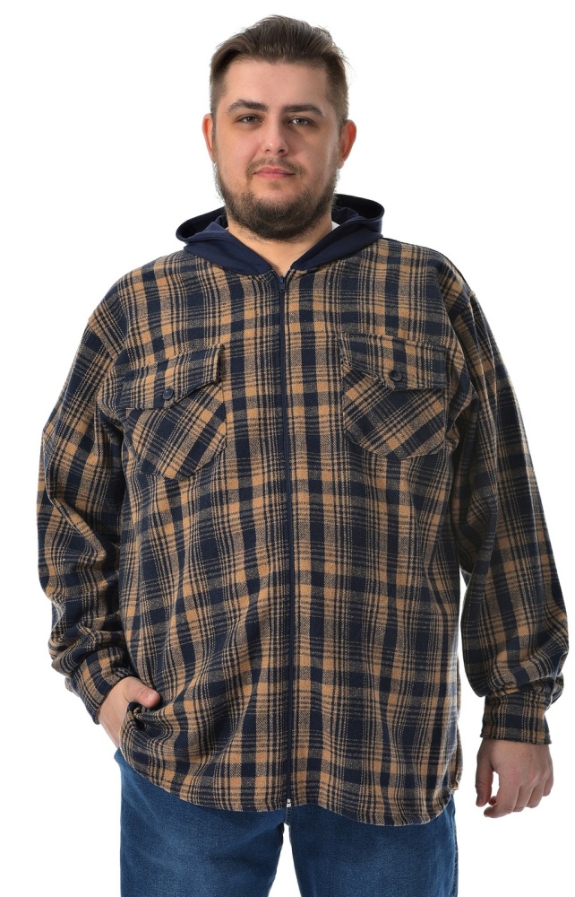 Мужская ветровка синего цвета из ткани с высоким содержанием хлопка. Прорезные карманы по бокам и на груди. Капюшон отстегивается. Крой прямой.