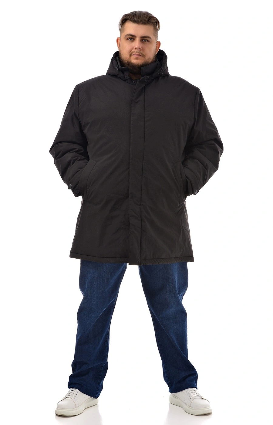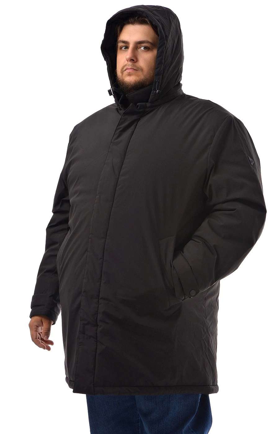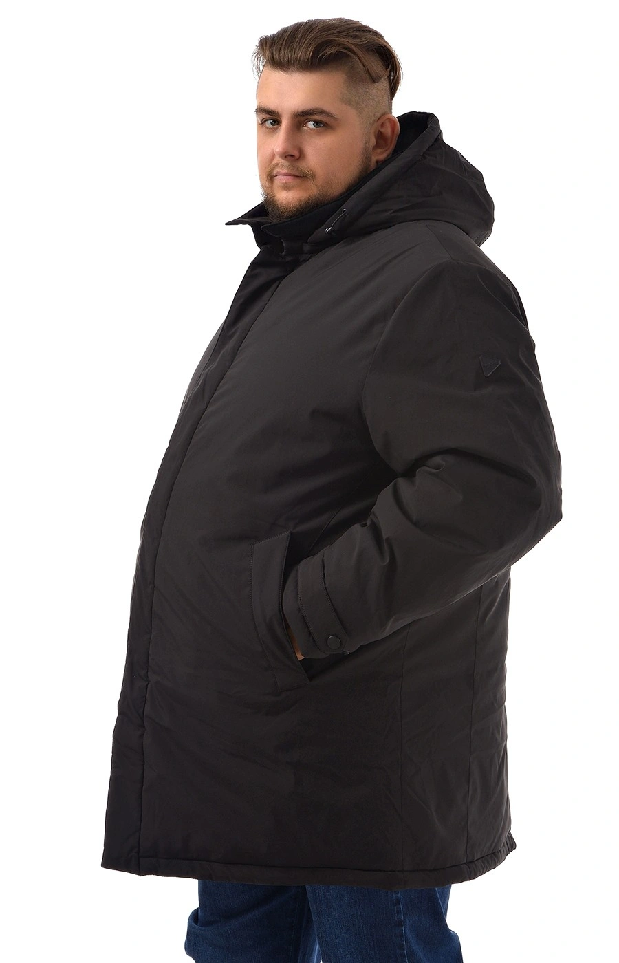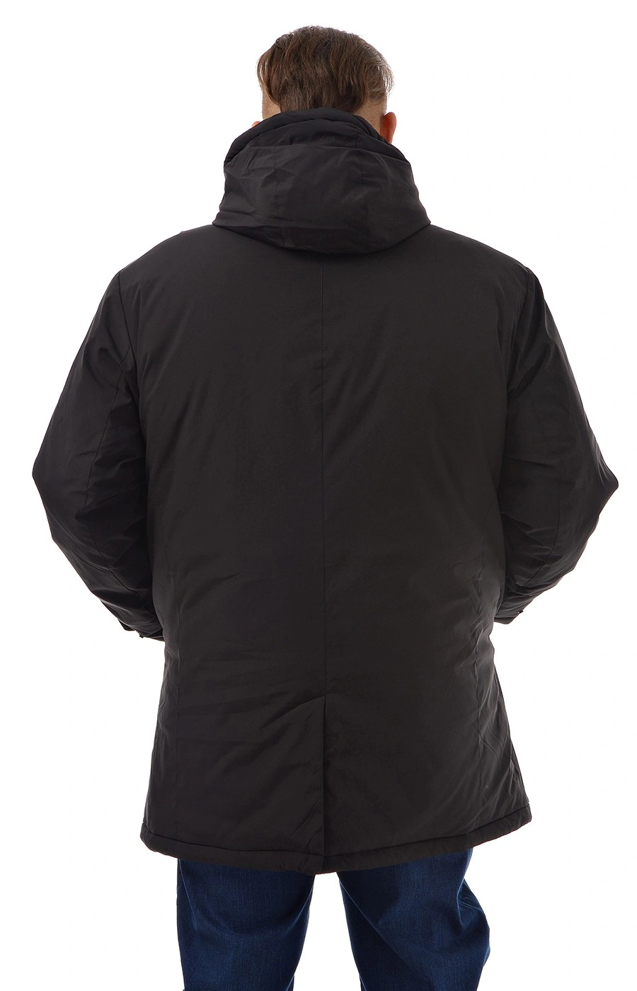 Зимняя мужская куртка черного цвета с капюшоном. Утеплитель - синтепон. Хорошая посадка, качественная ткань и фурнитура