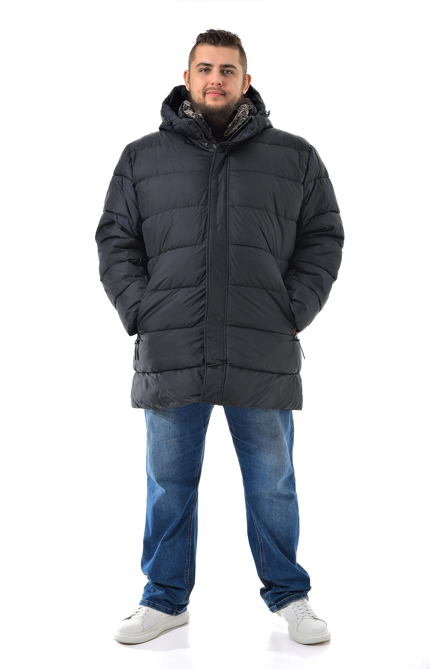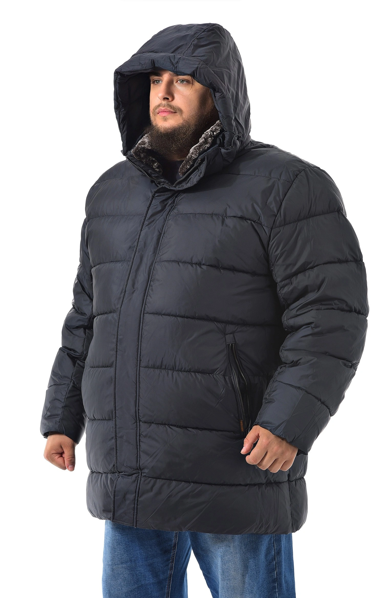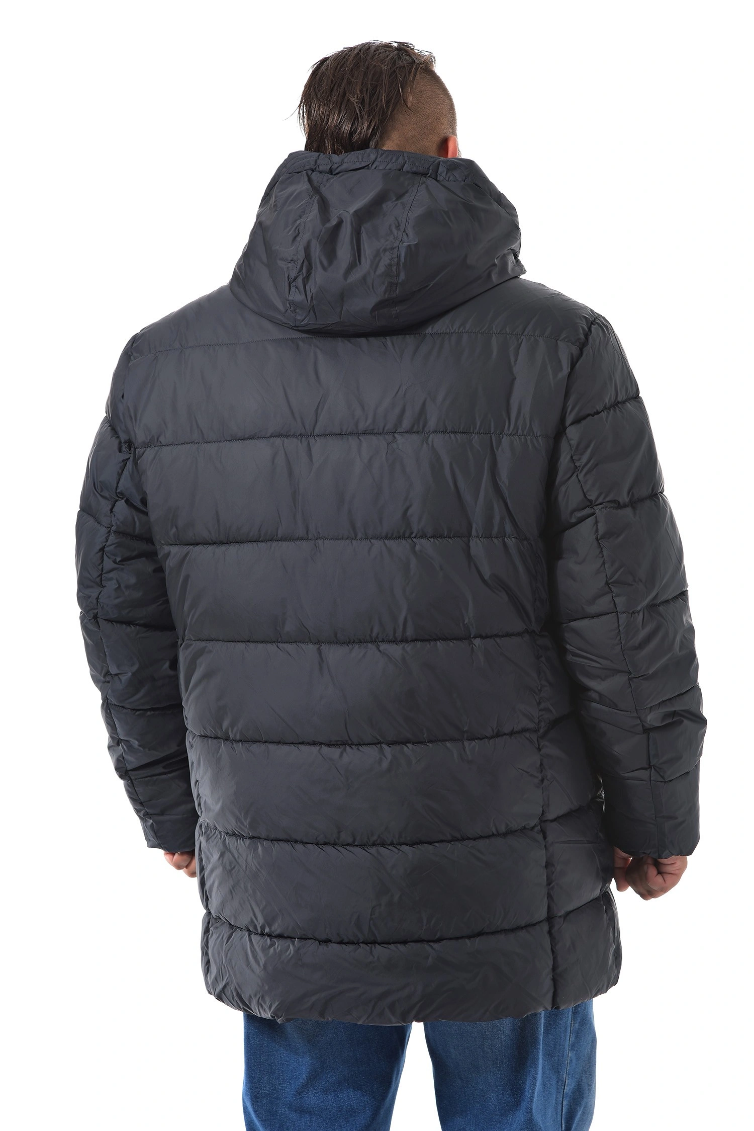 Зимняя удлиненная мужская куртка темно синего цвета с капюшоном. Утеплитель - синтепон. Хорошая посадка, качественная ткань и фурнитура. Множество функциональных карманов. Капюшон цельный