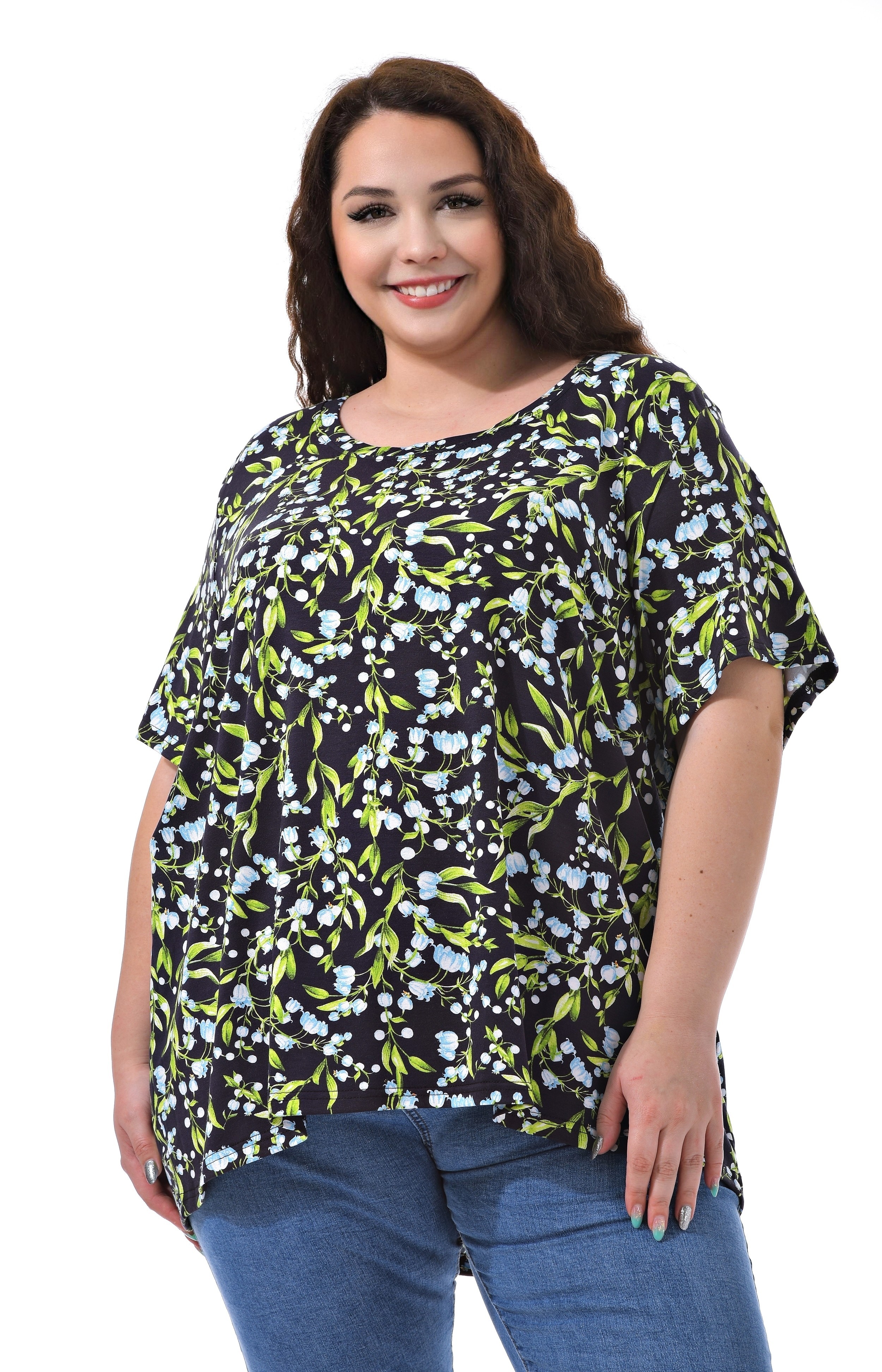 Женская футболка из мягкой вискозы с цветочным рисунком. Вырез - круглый.