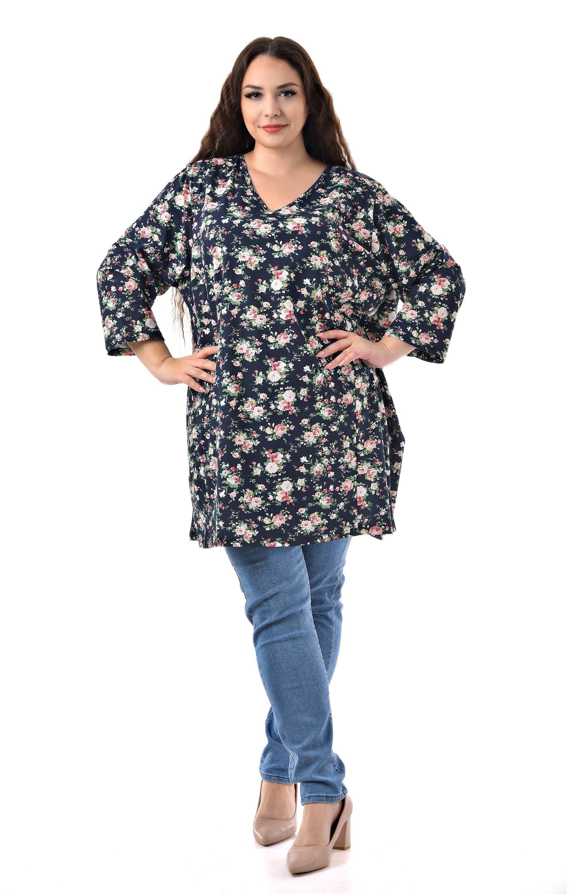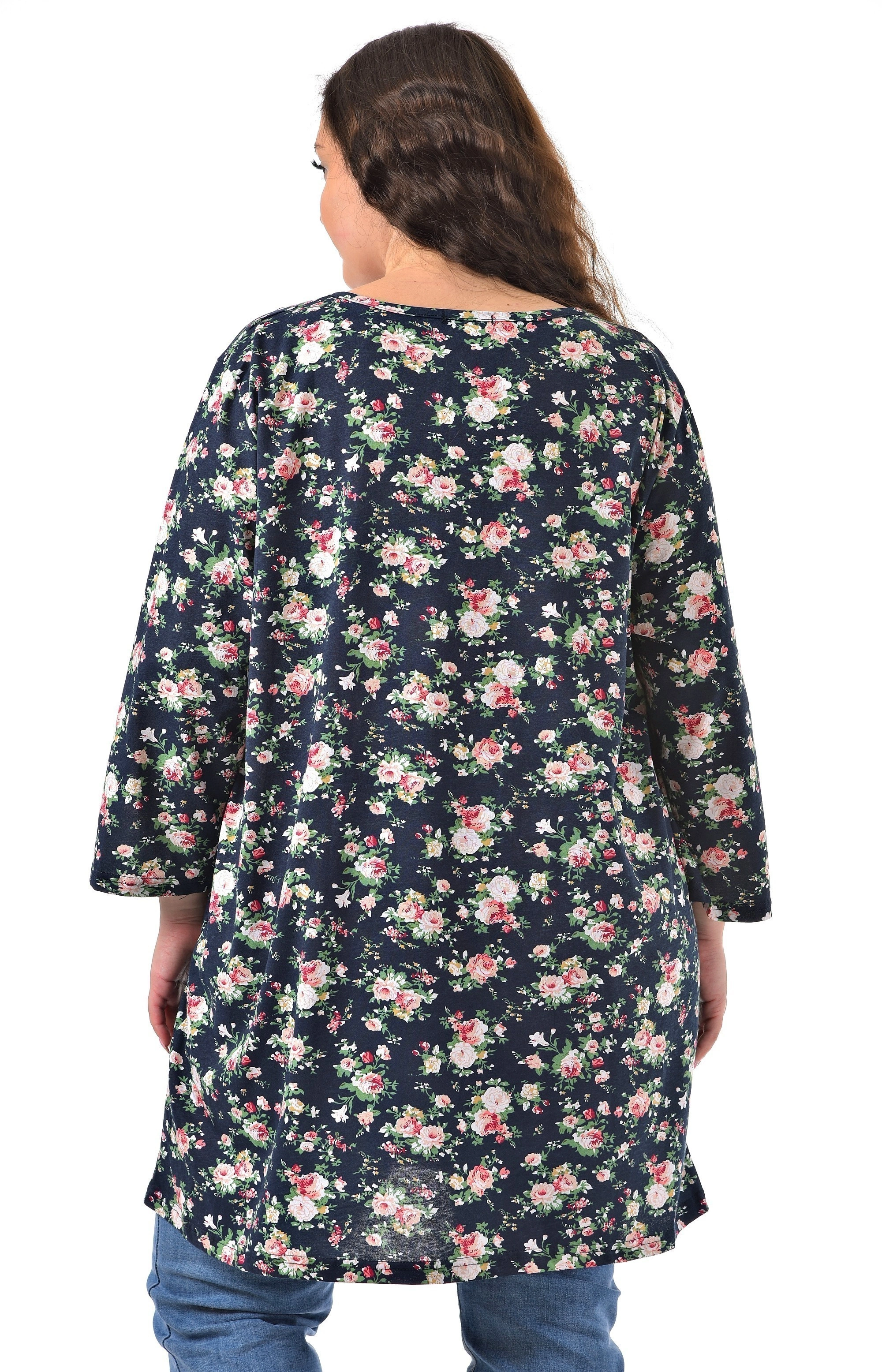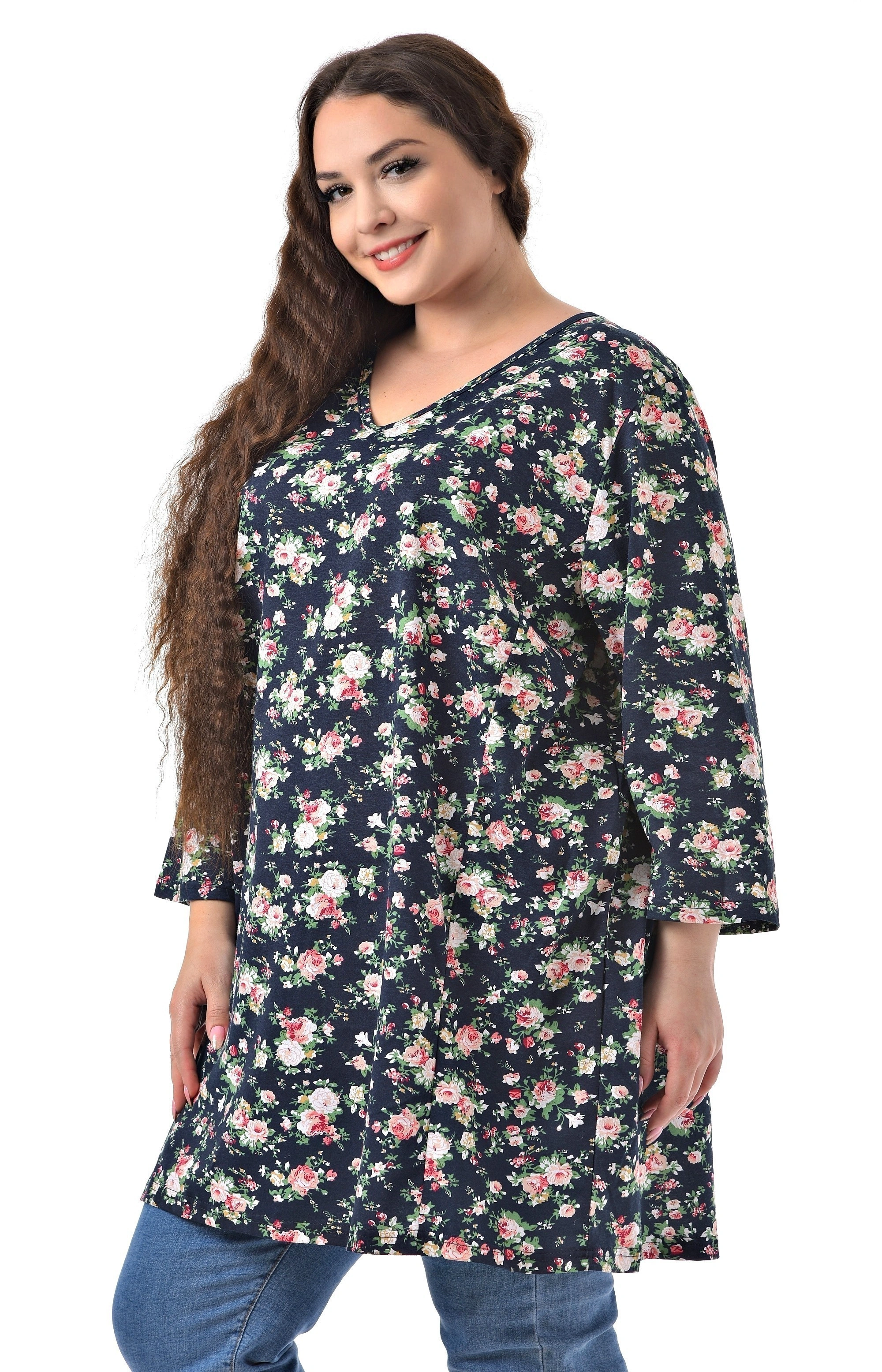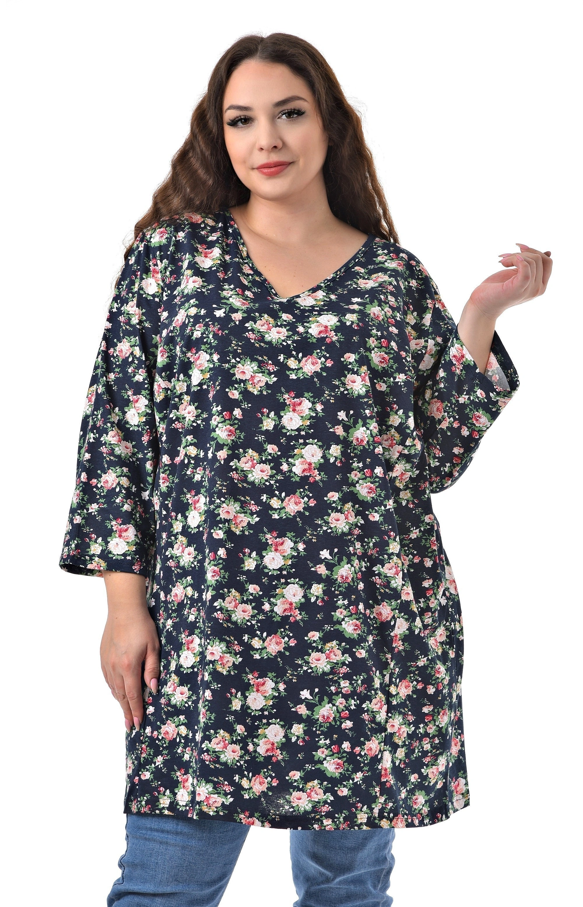 Стильная туника от бренда "Большие люди" с цветочным рисунком на синем фоне добавляет образу женственности. Универсальная удлинённая модель изготовлена из 100% хлопковой ткани. Модель с V вырезом горловины. Рукав втачной 3/4 гармонично впишется в любой стиль. Данную модель можно носить в любой сезон. Она отлично сочетается с любыми брюками и джинсами, поэтому скомбинировать образ не составит труда. Стильная, удобная, повседневная туника займёт достойное место в Вашем гардеробе.