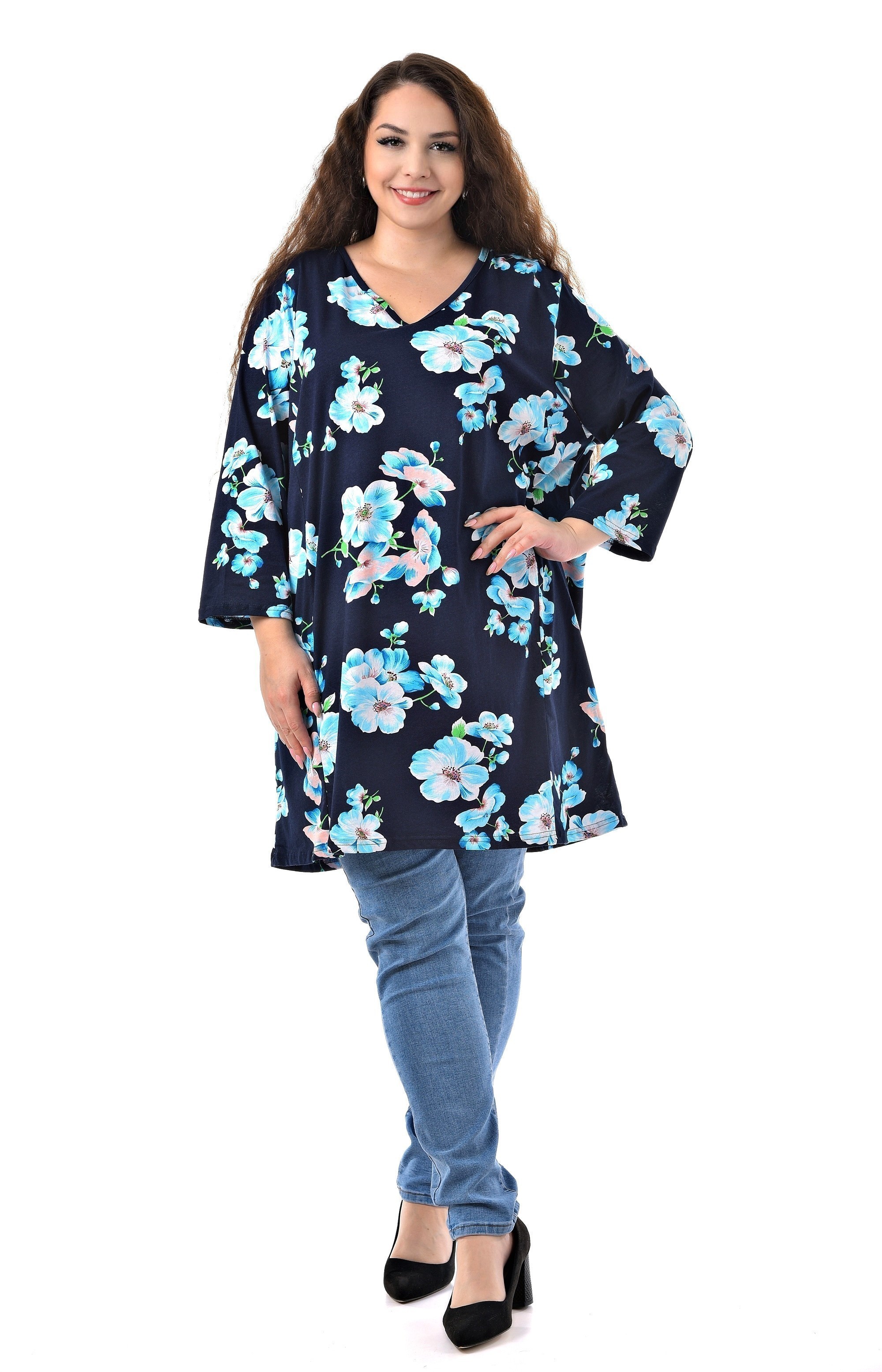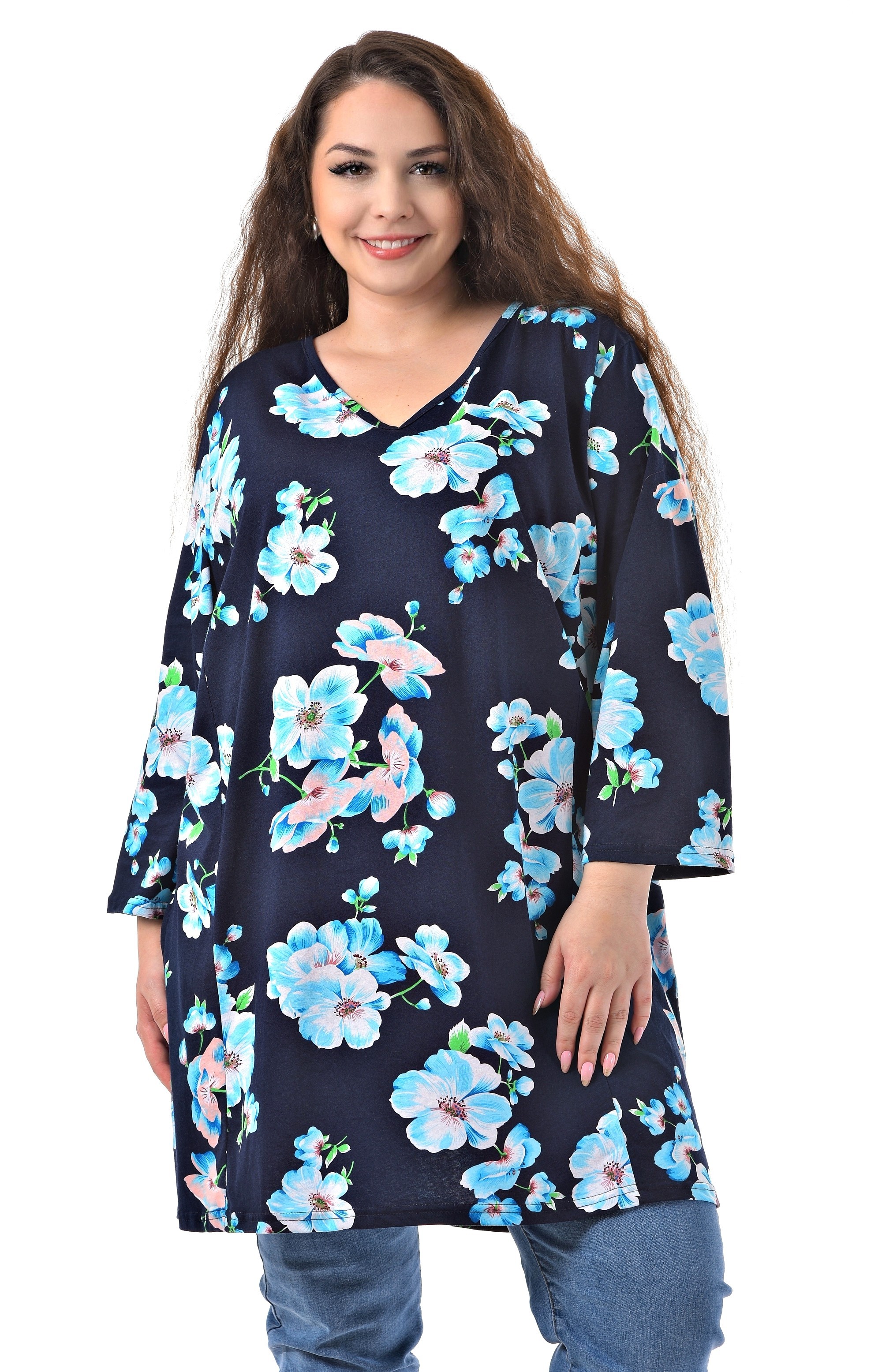 Туника синяя в цветочек / Большие люди / 22222363