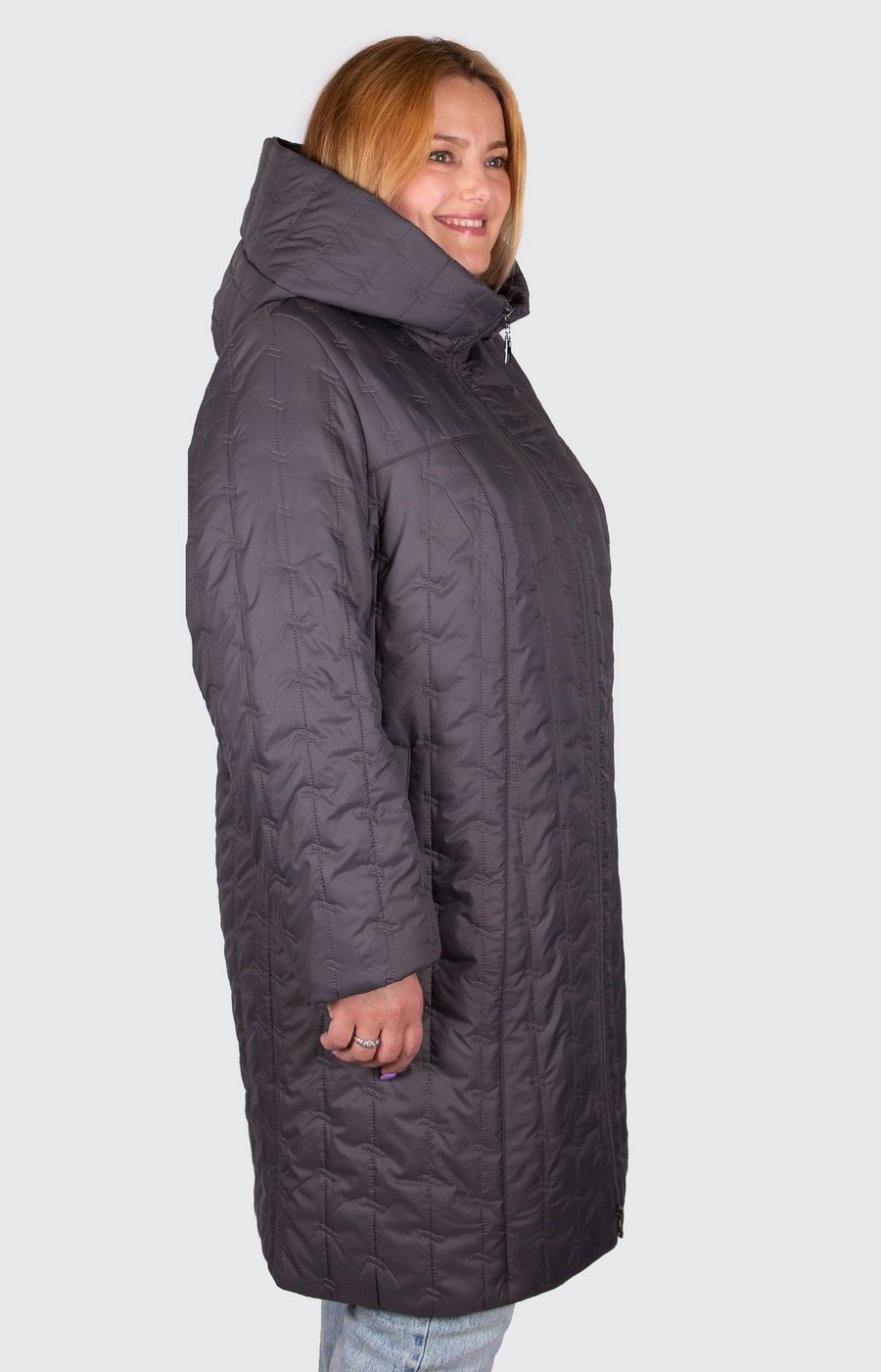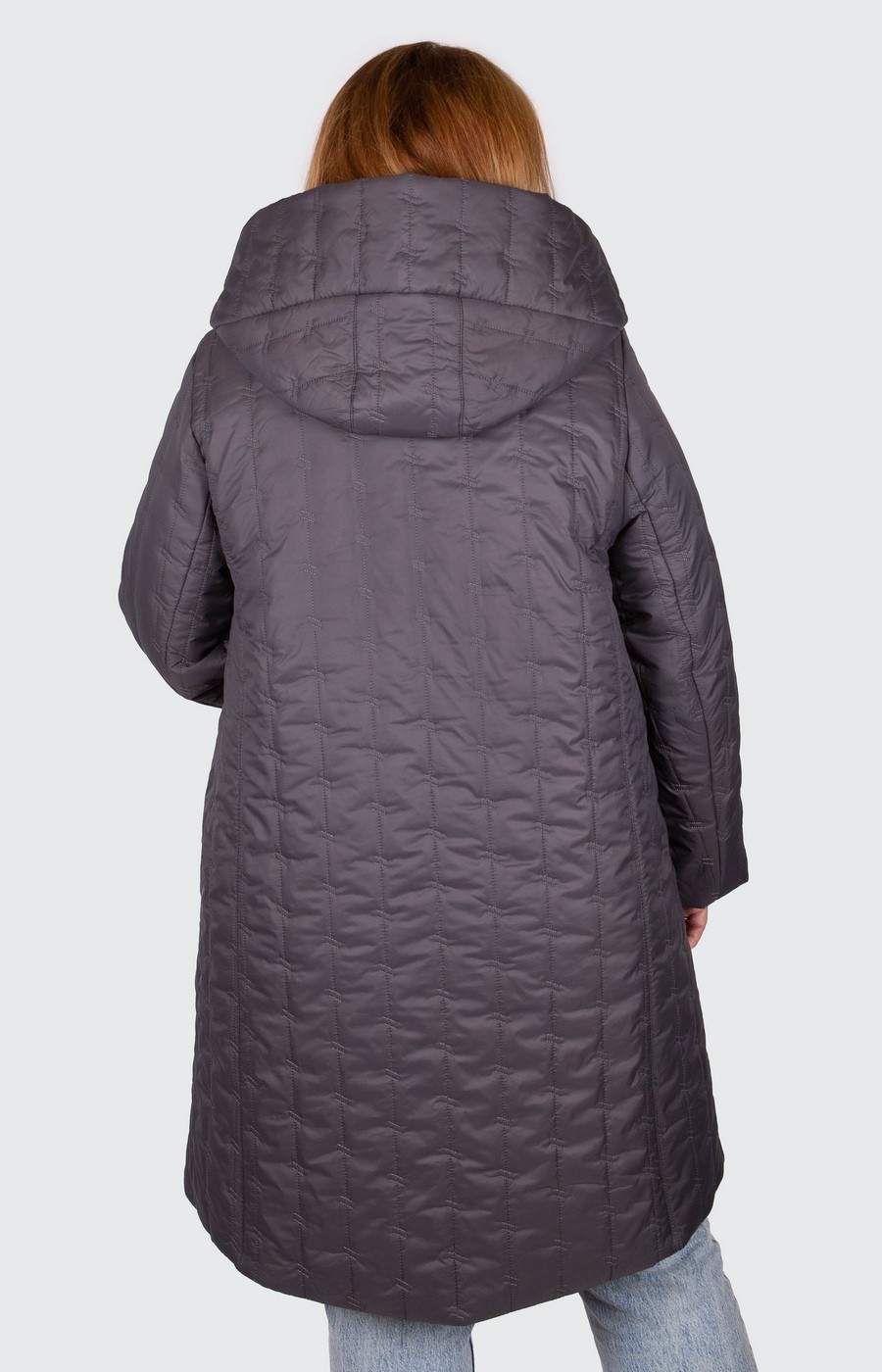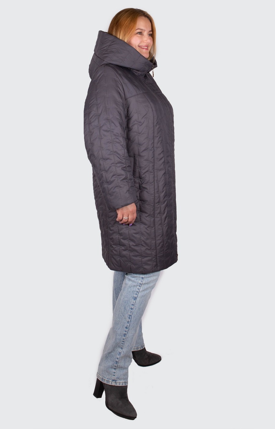 Полупальто женское стеганое в цвете графит. Центральная застежка на молнию. Цельный капюшон.