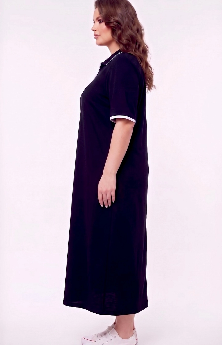 Платье поло в лаконичном стиле с свободным силуэтом и длиной ниже колена создаёт комфортный повседневный образ. Темный однотонный цвет визуально собирает комплект, а контрастная планка на поло-воротнике и рукавах добавляет аккуратный спортивный акцент. Мягко спущенная линия плеча и просторные короткие рукава обеспечивают удобство в движении, а прямой крой по всему периметру смотрится ненавязчиво и уместен и для дома, и для прогулок по городу. Платье гармонично сочетается с кедами и другой простой обувью, поддерживая расслабленный, но собранный образ на каждый день. Если сомневаетесь с выбором, мы поможем уточнить размер и посадку по вашим меркам, а заказ аккуратно доставим удобным для вас способом.