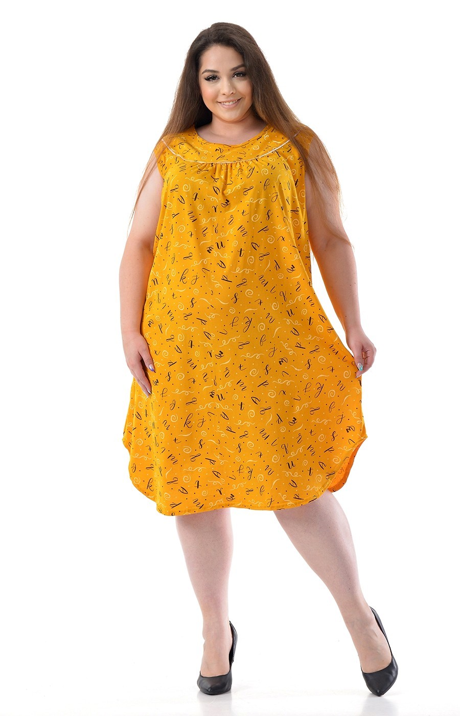 Женская ночная сорочка без рукавов жёлтого цвета с принтом буковки. При производстве сорочки используются высококачественные материалы, пошив ведётся по технологии. Сорочка выполнена из 100% хлопка, и идеально подходит для тех кто любит комфорт и качество. Свободный силуэт и оптимальная длина подходит для всех возрастов. Ночнушка очень универсальная, отлично подходит как одежда для дома в качестве домашнего платья.