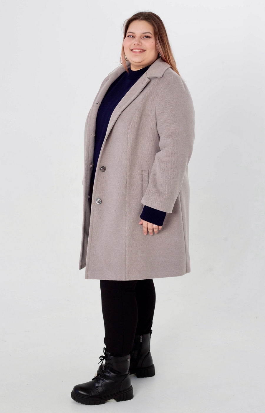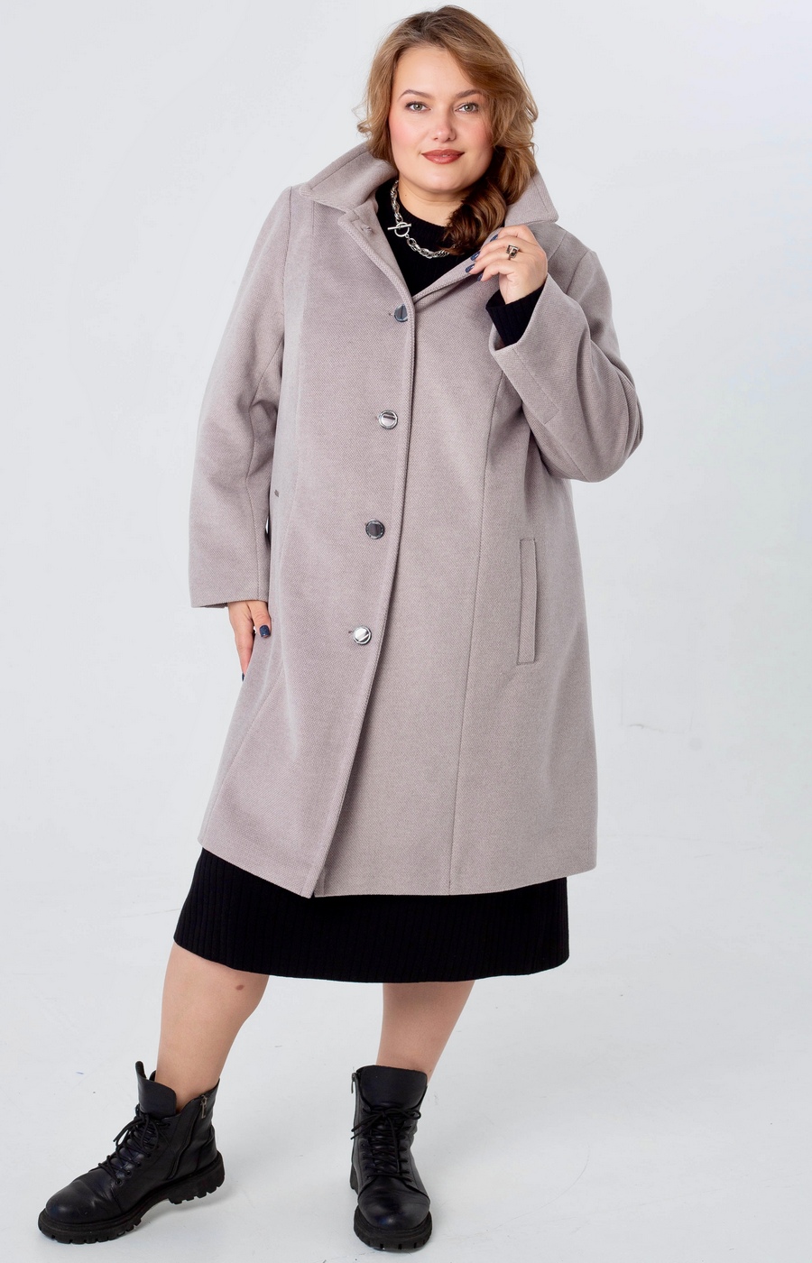 Женское пальто прямого силуэта с длиной по колено и лаконичным дизайном создаёт спокойный повседневный образ, уместный и для города, и для прогулок. Нежный бежевый цвет легко сочетается с базовыми вещами гардероба и обувью разного стиля. Модель выполнена с отложным воротником, аккуратной центральной планкой на пуговицах и ровной линией плеча, за счёт чего образ выглядит собранным. Прямая линия борта и лаконичная фурнитура поддерживают спокойный, уличный характер изделия, а мягко смотрящаяся фактура верха даёт ощущение комфорта в носке. Пальто гармонично выглядит с платьями, джинсами и юбками миди, позволяя оставаться в одном стиле весь день. Подскажем с выбором размера и посадки по вашим параметрам, а готовый заказ отправим удобной для вас доставкой — просто напишите, как вам комфортнее оформить покупку.