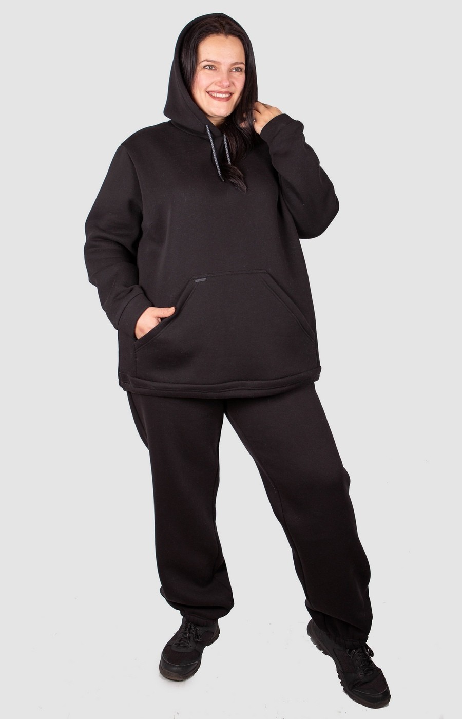 Утепленный плотные брюки спортивного плана. Ткань футер с начесом. Цвет черный.