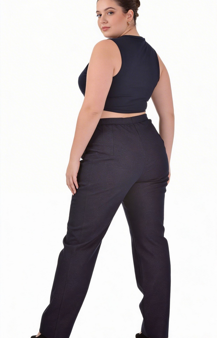 Синие женские брюки с прямым силуэтом и ровной линией штанин создают аккуратный, собранный образ для повседневных комплектов. Плотно посаженная по талии модель фиксируется мягким приталенным поясом без видимых застёжек, за счёт чего линия живота выглядит ровной и чистой. Длина по кадру стремится к классической, закрывает щиколотку и органично смотрится с обувью на невысоком каблуке или устойчивом ходу. Ткань выглядит гладкой, с лёгким благородным отливом, поэтому брюки легко вписываются и в повседневный, и в более строгий деловой образ. Вертикальные швы и выточки добавляют ощущение аккуратности и поддерживают форму по бедру и колену, не перегружая дизайн. Если сомневаетесь в посадке, подскажем размер по вашим меркам и поможем с выбором, а готовый заказ аккуратно доставим удобным вам способом.