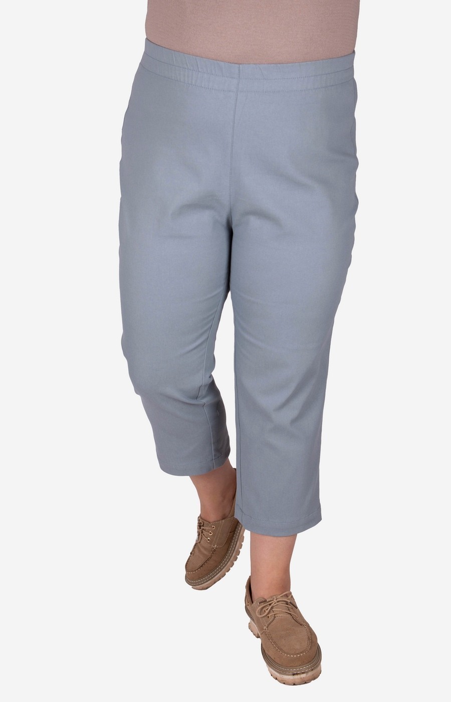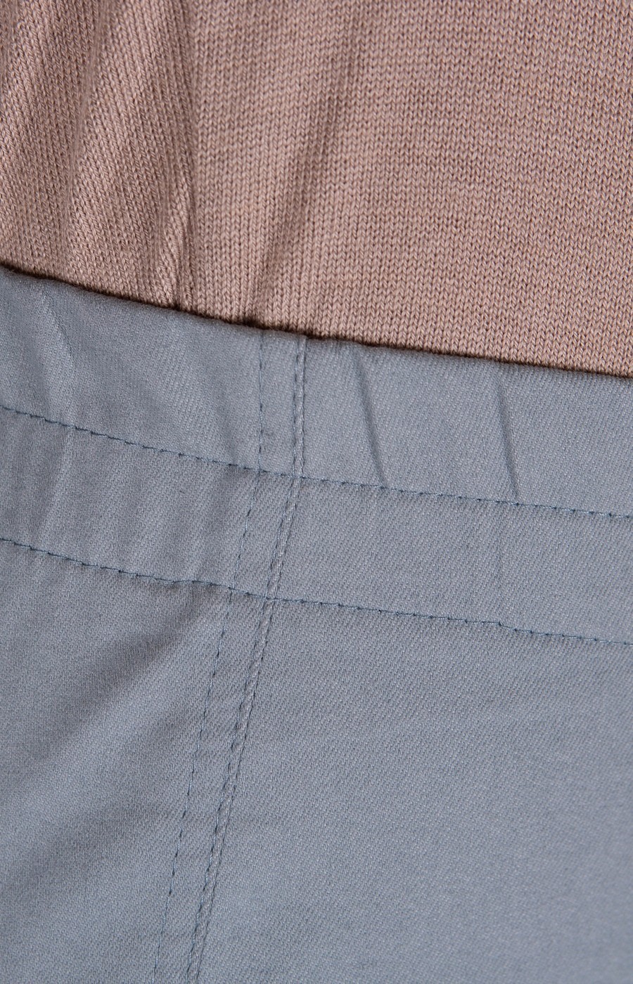 Укороченные брючки из хлопковой ткани серо-голубого цвета.