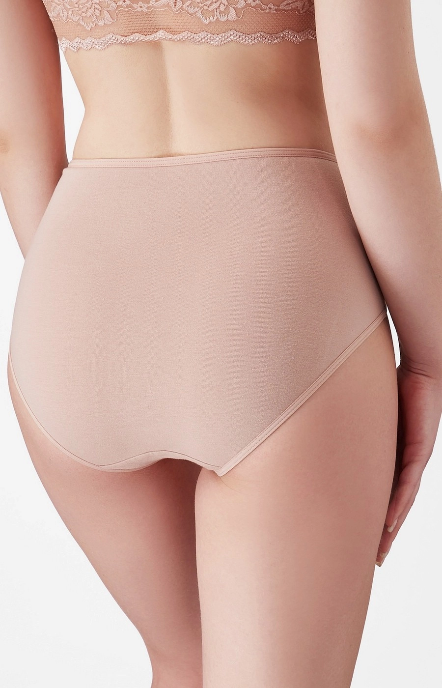 Женские трусы большого размера бежевого цвета с высокой посадкой создают аккуратный, женственный силуэт и уверенно закрывают линию живота и бедер. Гладкое однотонное полотно спереди и сзади сочетается с ажурными вставками по бокам, образуя мягкие плавные линии и деликатный акцент на талии. Эластичный пояс равномерно прилегает к фигуре, фиксируя изделие без лишних деталей и утяжеления. Неяркий бежевый оттенок делает модель удобной для повседневного гардероба и незаметной под светлой одеждой дома или на каждый день. Если сомневаетесь в выборе, подскажем размер и посадку по вашим меркам, организуем удобную доставку