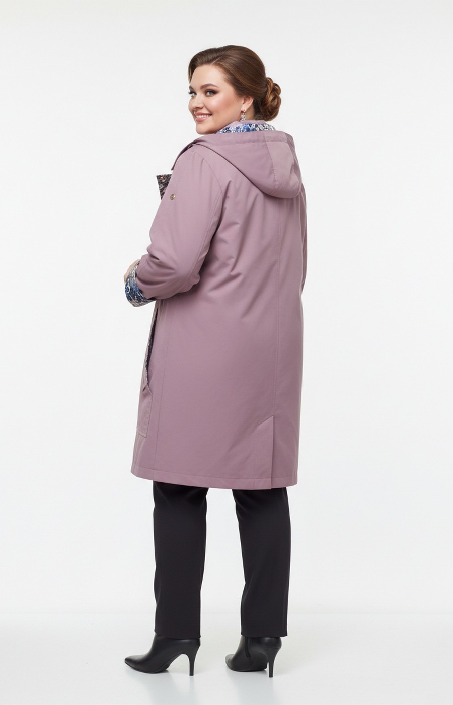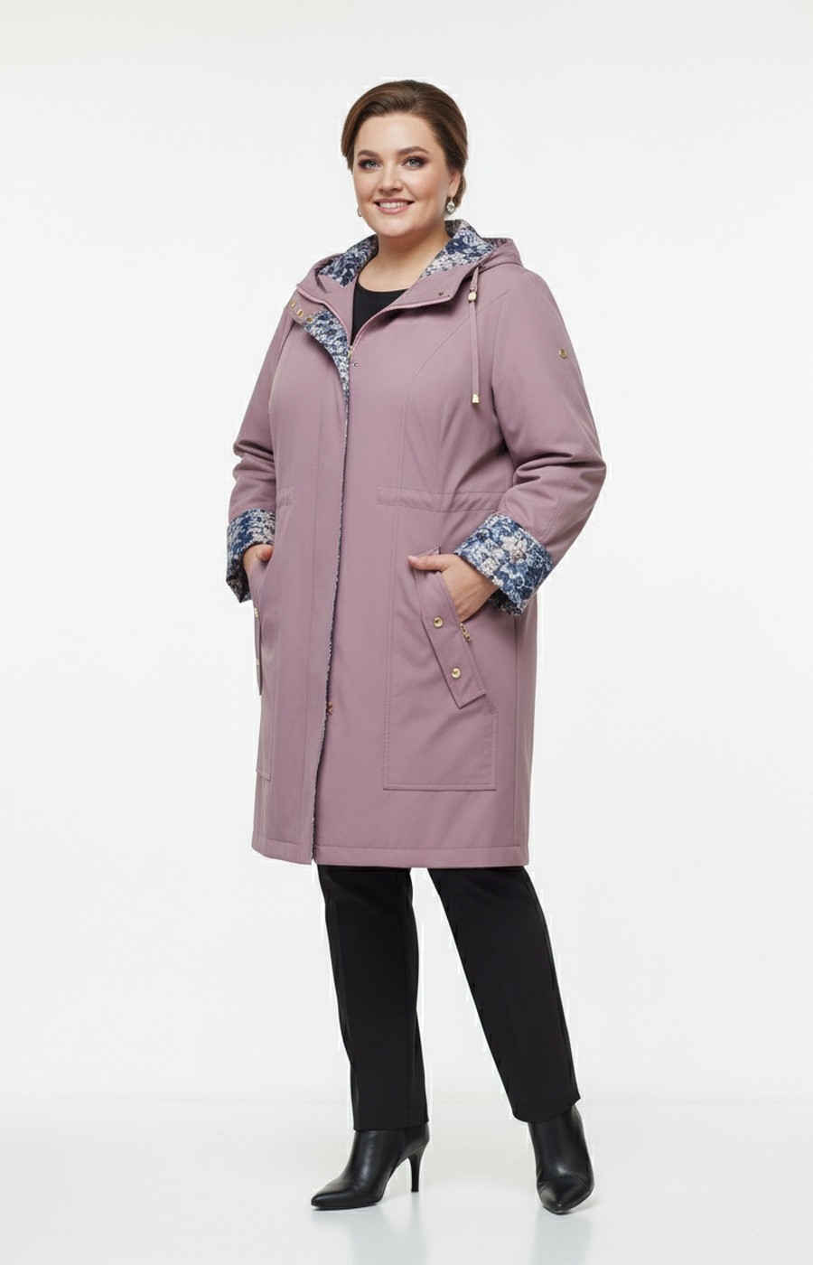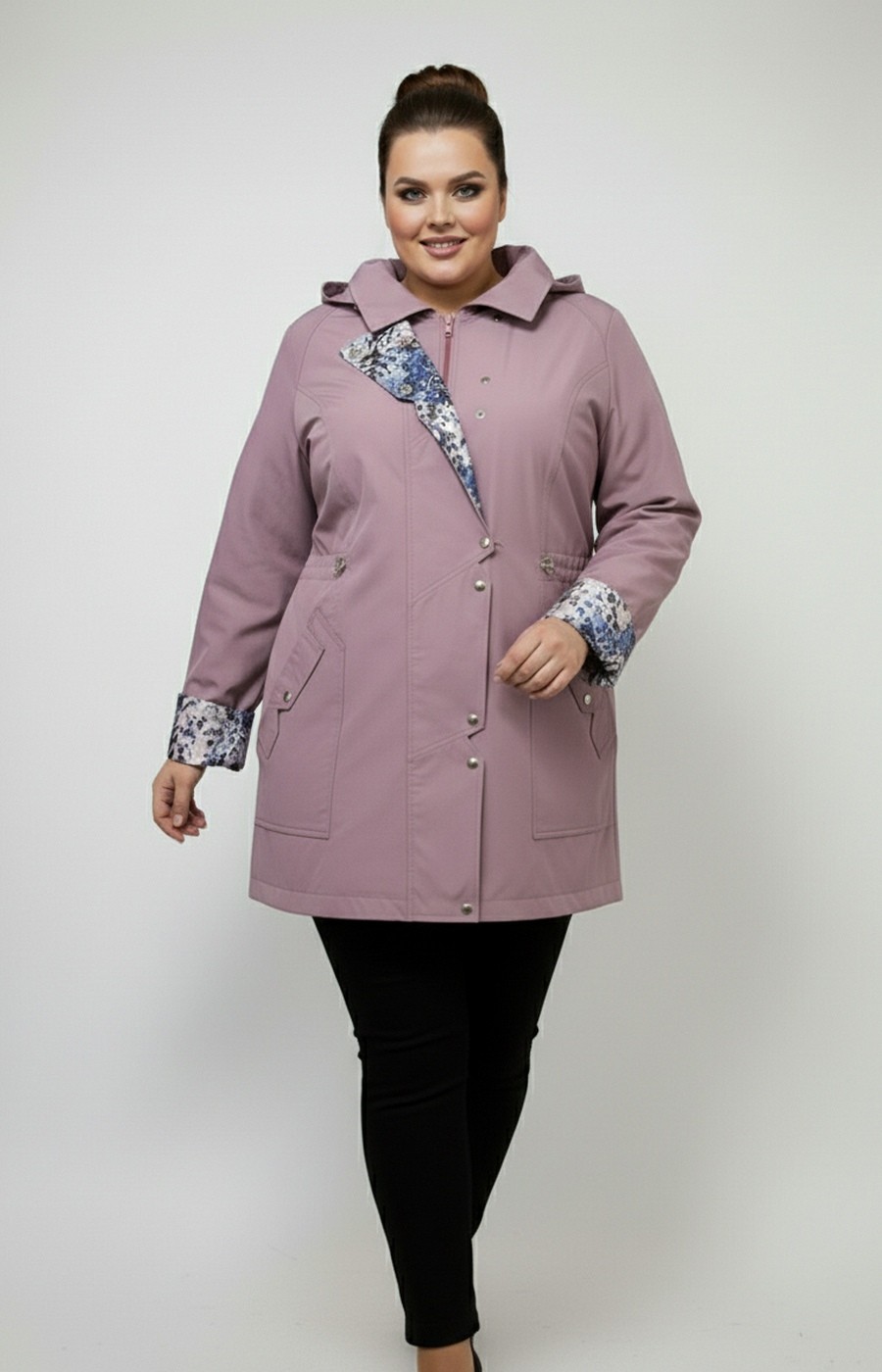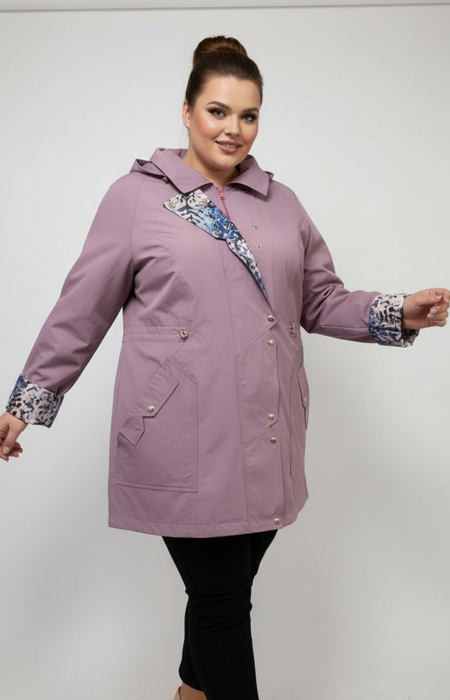 Женская удлиненная ветровка plus size в приглушенном лиловом цвете выполнена в свободном прямом силуэте, который обеспечивает комфортную посадку и не стесняет движения в повседневных образах. Гладкая ткань визуально держит форму, а центральная застежка на молнию в сочетании с планкой на кнопках надежно фиксирует изделие по всей длине. Капюшон с аккуратной линией выреза и небольшим козырьком помогает чувствовать себя комфортно на улице, по линии талии расположены утяжки, позволяющие мягко скорректировать объем и создать более собранный образ без лишних деталей. Отвороты рукавов и внутренняя планка с контрастным принтом добавляют парке женственный акцент и делают лаконичный городской стиль более выразительным, хорошо сочетаясь с прямыми брюками или джинсами для прогулок, поездок и деловых будней. Перед оформлением заказа подскажем размер и посадку по вашим меркам, организуем удобную доставку и при необходимости оформим обмен или возврат по правилам магазина, чтобы покупка этого изделия была спокойным и продуманным решением.