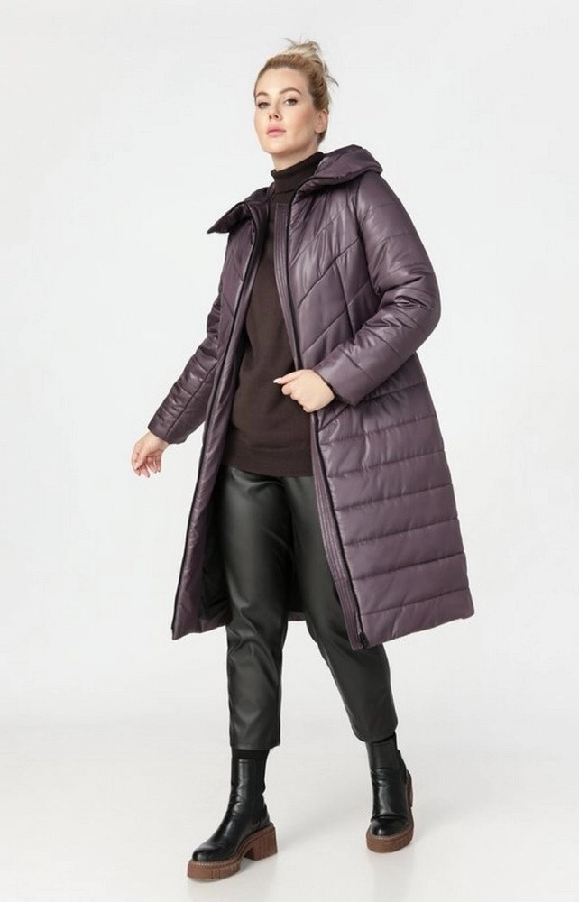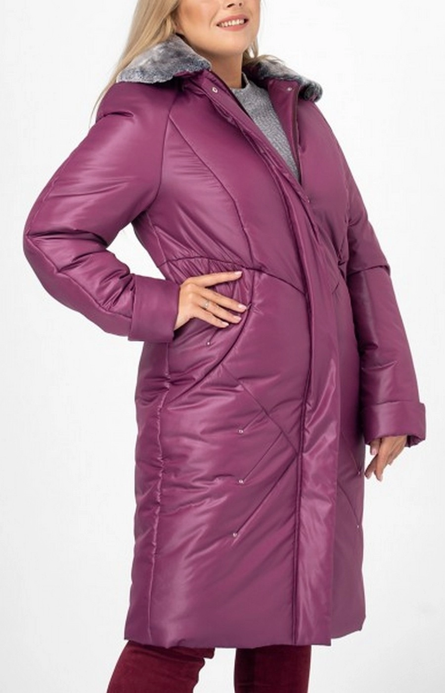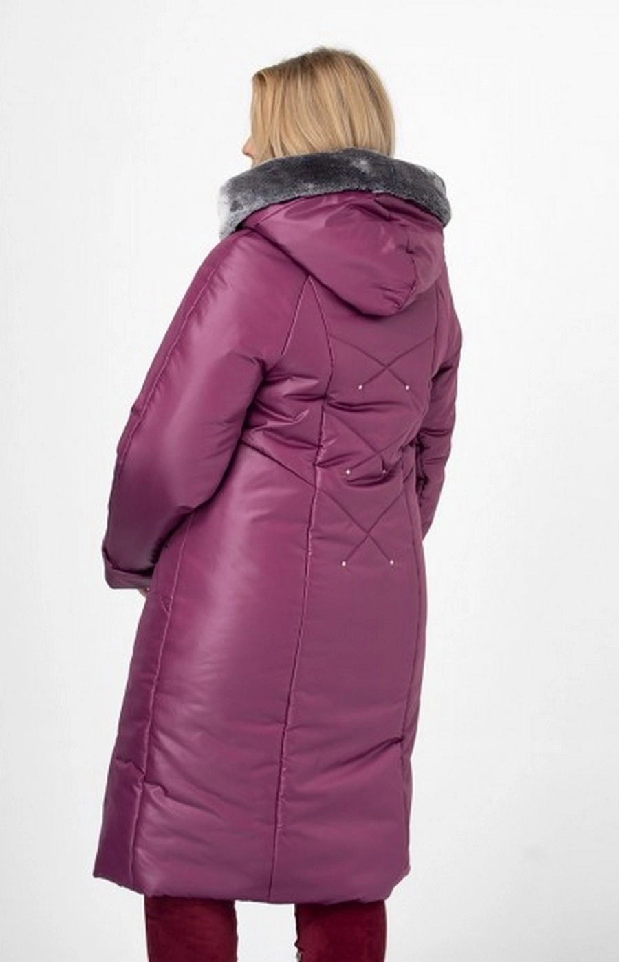 Пальто зимнее женское брусничного цвета, из водоотталкивающей плащевой ткани. Модель имеет несъёмный капюшон с отделкой искусственным мехом. Карманы врезные удобные. Центральная застёжка на молнии
